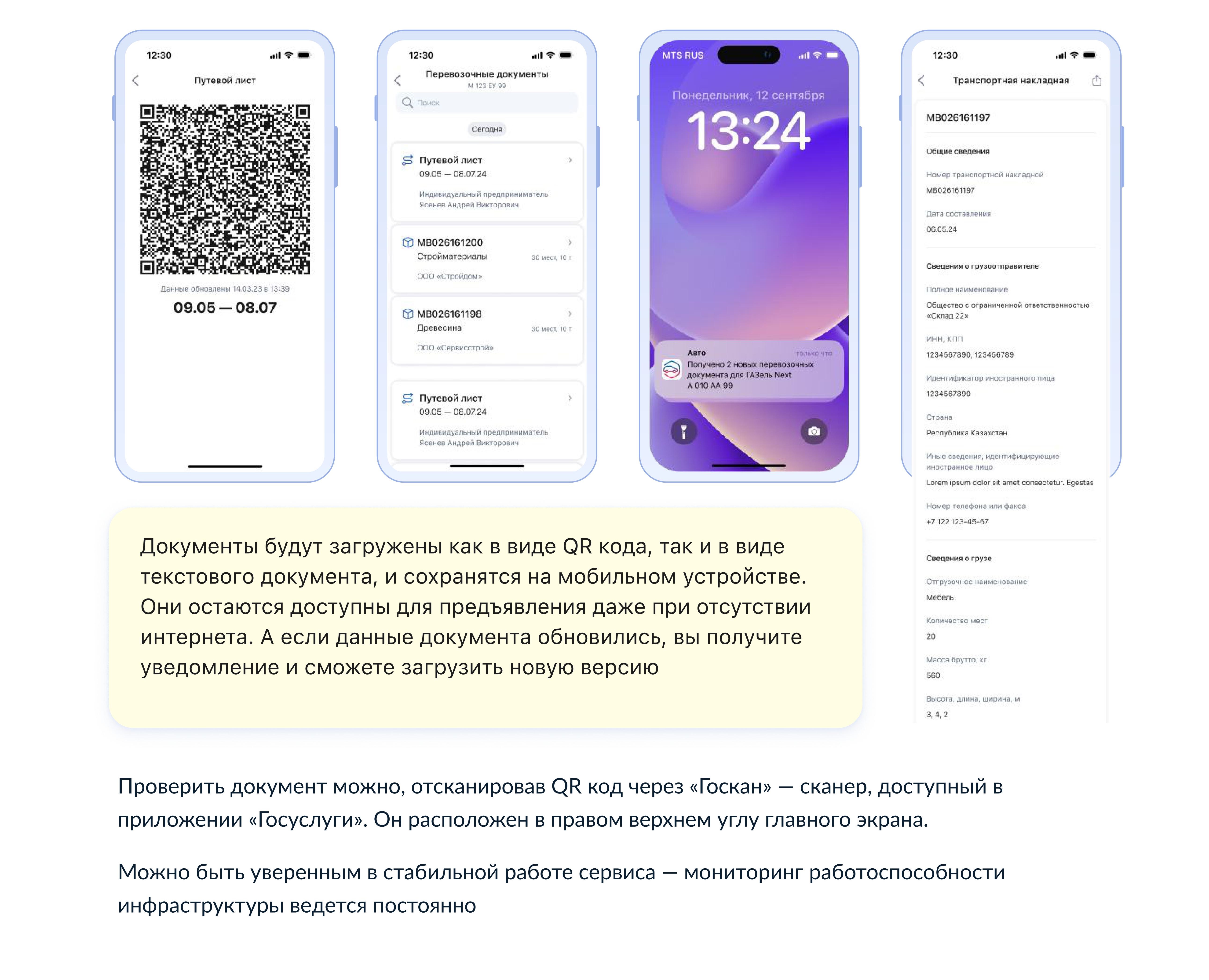 Кроме того, Минтранс совместно с Минцифры России развивает сервис, позволяющий водителям предъявлять электронные перевозочные документы (транспортную накладную и путевой лист) на дороге. Для этого будет использоваться мобильное приложение «Госуслуги Авто», где документы отображаются в виде QR‑кода. Сведения в личный кабинет приложения поступают напрямую из ГИС ЭПД – проактивно и без изменений.