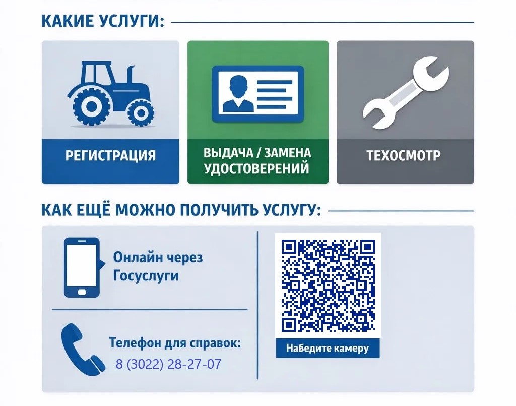 Государственная инспекция Забайкальского края информирует, что с 23 по 27 марта 2026 года будет организован приём граждан по вопросам регистрации самоходных машин, выдачи (замены) удостоверений тракториста‑машиниста и проведения технического осмотра.